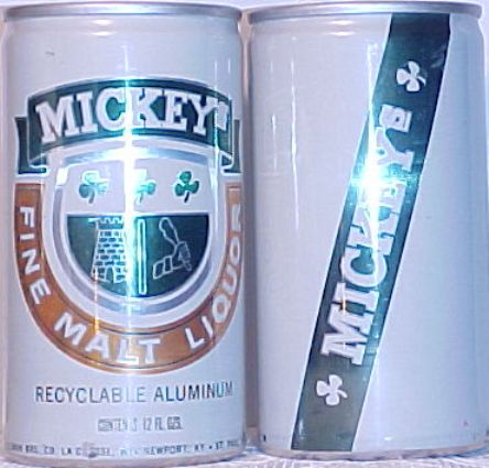 - B 1837 MICKEY'S MALT LIQUOR BY G. HEILEMAN, LA CROSSE, NEWPORT, ST. PAUL, EVANSVILLE, (NATIONAL CAN), ALUM., $ 4.00