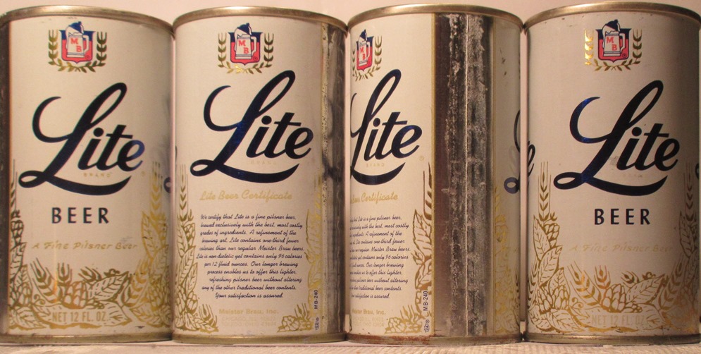 - BCU 90-6, LITE BEER, FINE PILSNER BEER, LITE BEER CERTIFICATE, MEISTER BRAU, INC. NET, 12 FL. OZ., CHICAGO, ILL, TOLEDO, OHIO, CROWN CAN 24, (MB-240) METALLIC FINISH, $8.00