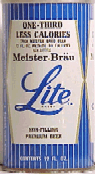 - MEISTER BRAU LITE BY MEISTER BRAU, 1968, PULL TAB, T.O., GRADE 1, MOISTURE SPOTTING, METALLIC FINISH, $ 3.00