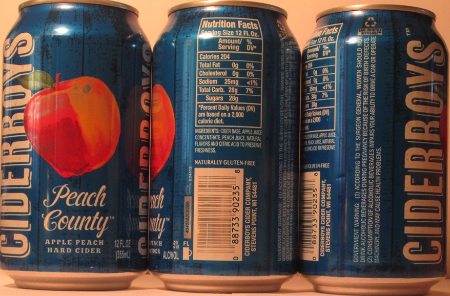 CIDERBOYS PEACH COUNTY APPLE PEACH HARD CIDER, CIDERBOY'S CIDER COMPANY, STEVEMS POINT, (CROWN/BO4415), TN, GW, ALUM., $ 1.25
