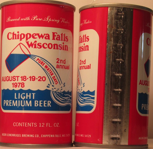 ABC 16-31 CHIPPEWA FALLS WISCONSIN 1ST ANNUAL PURE WATER DAYS, AUGUST 19-20-21, 1977, LIGHT PREMIUM BEER, JACOB LEINENKUGEL BREWING CO., CHIPPEWA FALLS. WIS., CONTINETIAL CAN, SS, $ 2.00