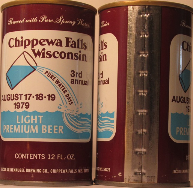 ABC 16-33 CHIPPEWA FALLS WISCONSIN 3rd ANNUAL PURE WATER DAYS, AUGUST 17-18-19, 1979, LIGHT PREMIUM BEER, JACOB LEINENKUGEL BREWING CO., CHIPPEWA FALLS. WIS., CONTINETIAL CAN, SS, $ 2.00