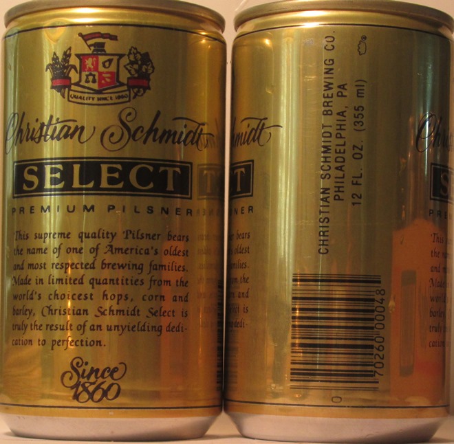 ABC 17-3 CHRISTIAN SCHMIDT SELECT PREMIUM PILSNER, CHRISTIAN SCHMIDT BREWING CO., PHILADELPHIA, PA, CROWN, ALUM., $ 1.50