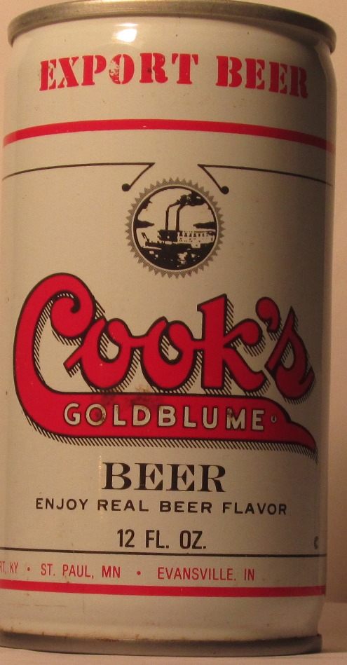B 555 COOK'S GOLDBLUME BEER, EXPORT BEER, ENJOY REAL BEER FLAVOR, G. HEILEMAN BRG. CO., LA CROSSE, SHEBOYGAN, NEWPORT, ST. PAUL, EVANSVILLE. CONTINENTAL CAN, CRIMP, $ 1.50
