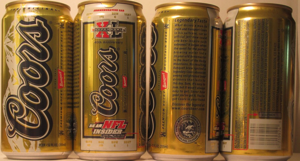 COORS ORIGINAL BANQUET BEER, BREWED IN GOLDEN, COLORADO WITH ROCKY MOUNTAIN WATER AND 100% NATURAL INGREDIENTS, COORS BREWING CO., GOLDEN, CO., GRID IRON WARRIORS, SET OF EIGHT CANS, 2000 $ 25.00