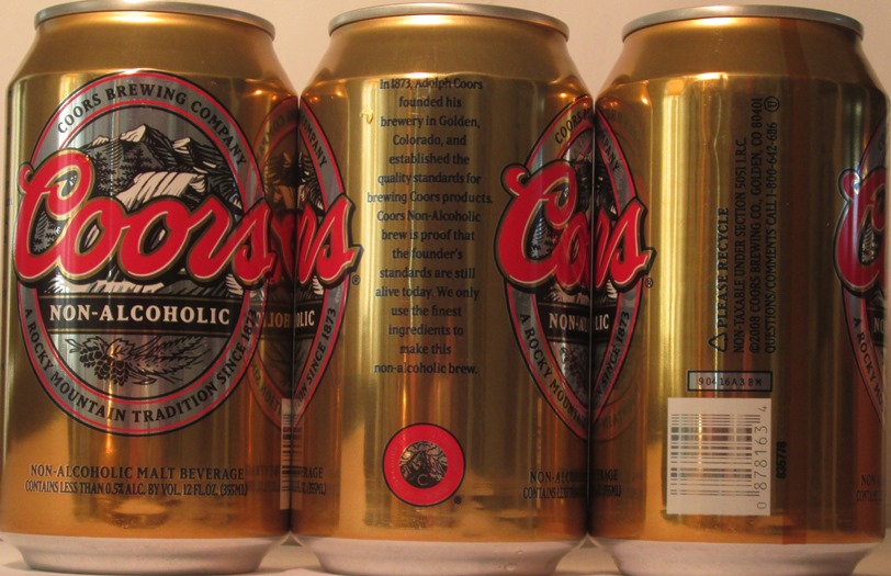 COORS NON-ALCOHOLIC. COORS BREWING COMPANY, A ROCKY MOUNTAIN TRADITION SINCE 1873, NON-ALCOHOLIC MALT BEVERAGE CONTAINS LESS THAN 0.5% ALC. BY VOL. 2008, COORS BREWING CO., GOLDEN, CO., (835778), TN, ALUM., $ 2.00