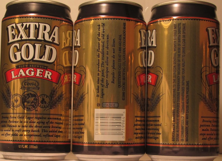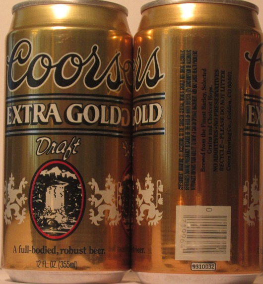 COORS EXTRA GOLD DRAFT, A FULL-BODIED, ROBUST BEER, 12 FL. OZ. (355ml), COORS BREWING CO., GOLDEN, CO., GW, ALUM., $ 1.50