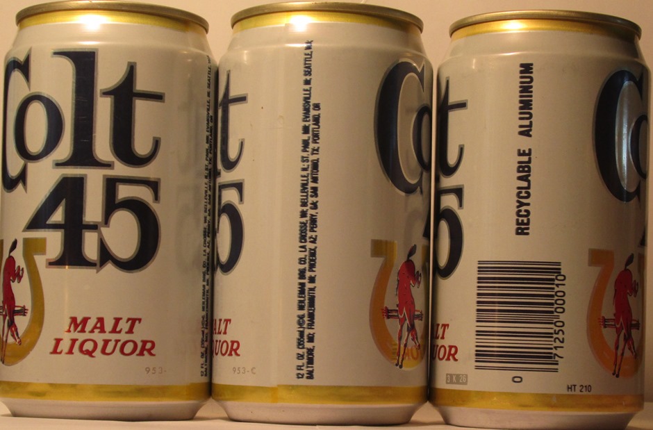 COLT 45 MALT LIQUOR BY NATIONAL, THE NATIONAL BREWING CO., BALTIMORE, MD., DETRIOT, MIAMI, PHOENIX, , 1660, AMERICAN CAN (9), ALUM., $ 1.25