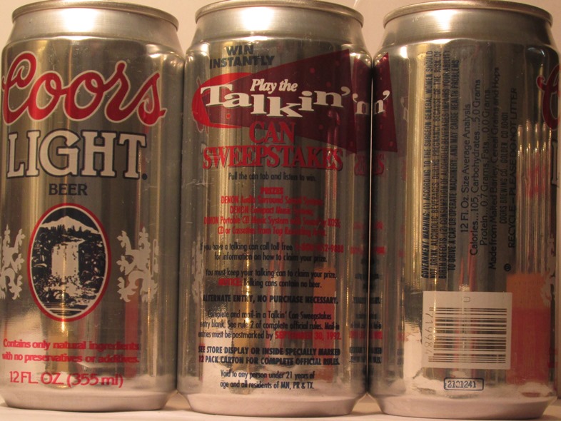 COORS BEER. ORIGINAL COORS IS BREWED WITH ALL NATURAL INGREDIENTS FOR A CLEAN, SMOOTH, FRESH FROM THE ROCKIES TASTE, WIN INSTANTLY, PLAY THE TALKIN' CAN SWEEPSTAKES, . COORS BREWING CO., GOLDEN, CO., TN, GW, ALUM., $ 3.00