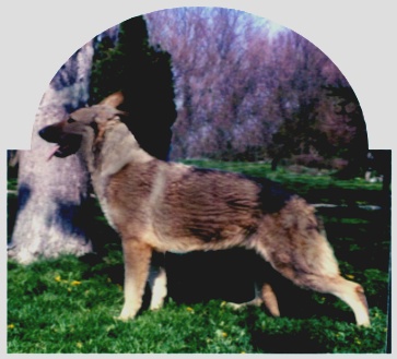 Lewin is a silver/black agouti (sable) litter brother to Matilda (described above). He has a dark face and black muzzle and produces dark faces and black muzzles in his colored progeny. His dam is out of excellent American show lines combined with working and German lines.