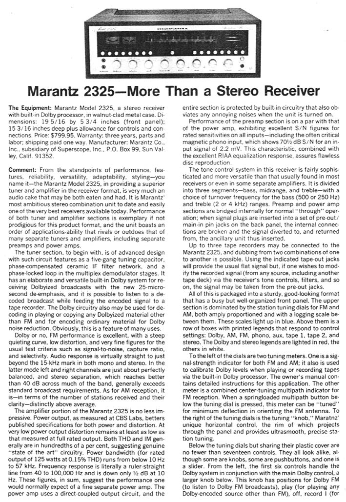 Marantz Model 2325 Receiver promotional advert, August 1975.