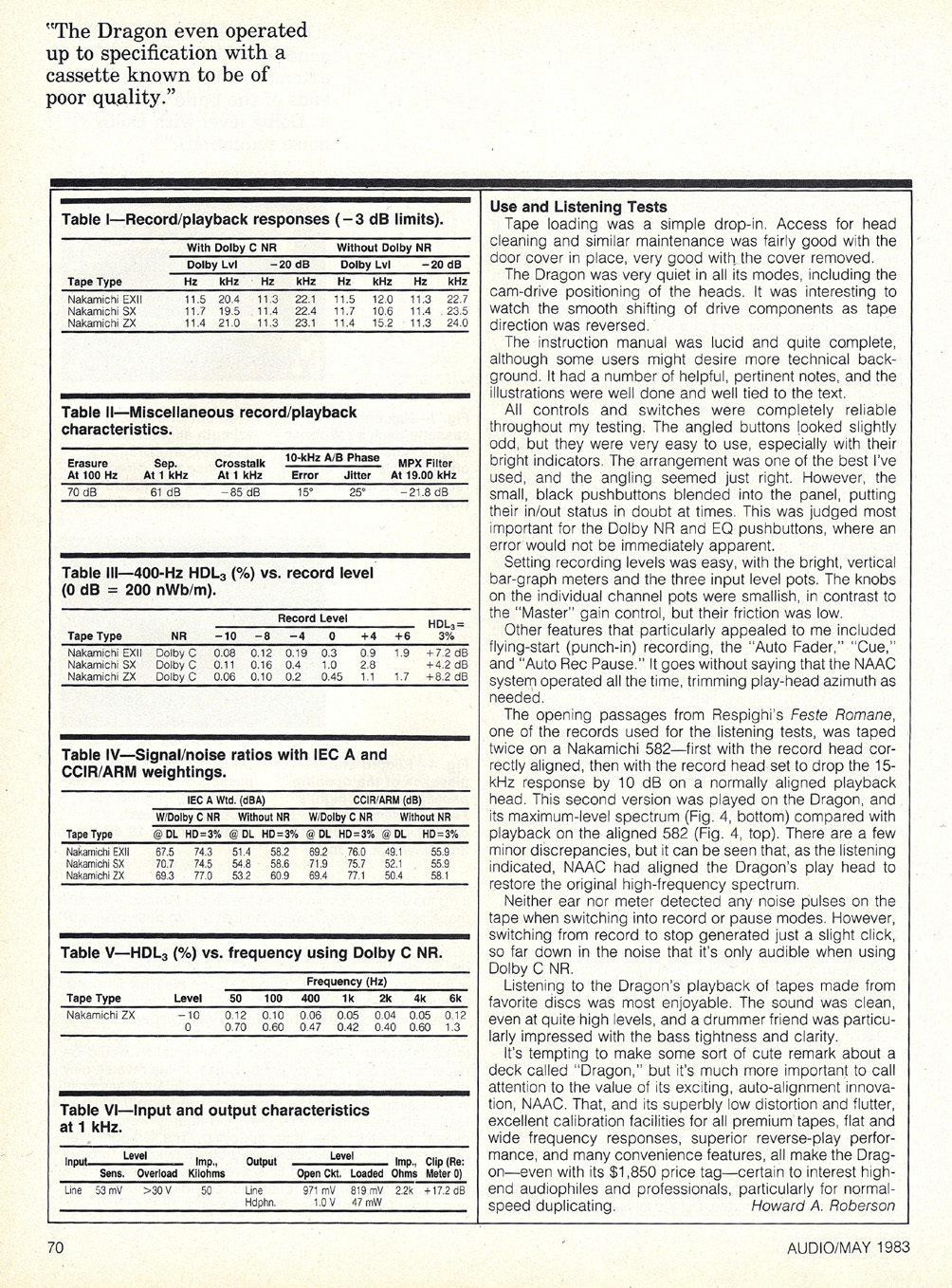 Return to Nakamichi Dragon article from Audio Magazine, May 1983.