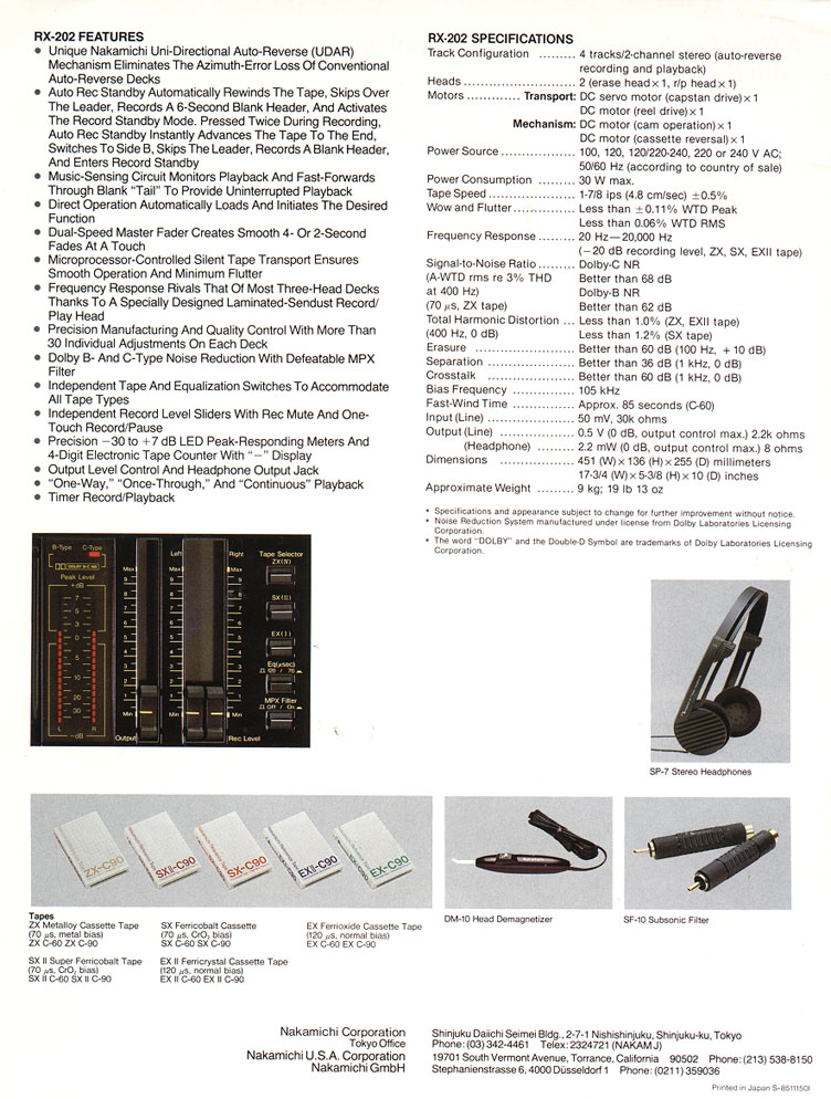 This is page 6 of 6. Click the links below to move between all 6 pages. Other RX-202 Brochure pages Brochure front cover page Return to BlueSwapper's Nakamichi Cassette Deck website Return to BlueSwapper's website