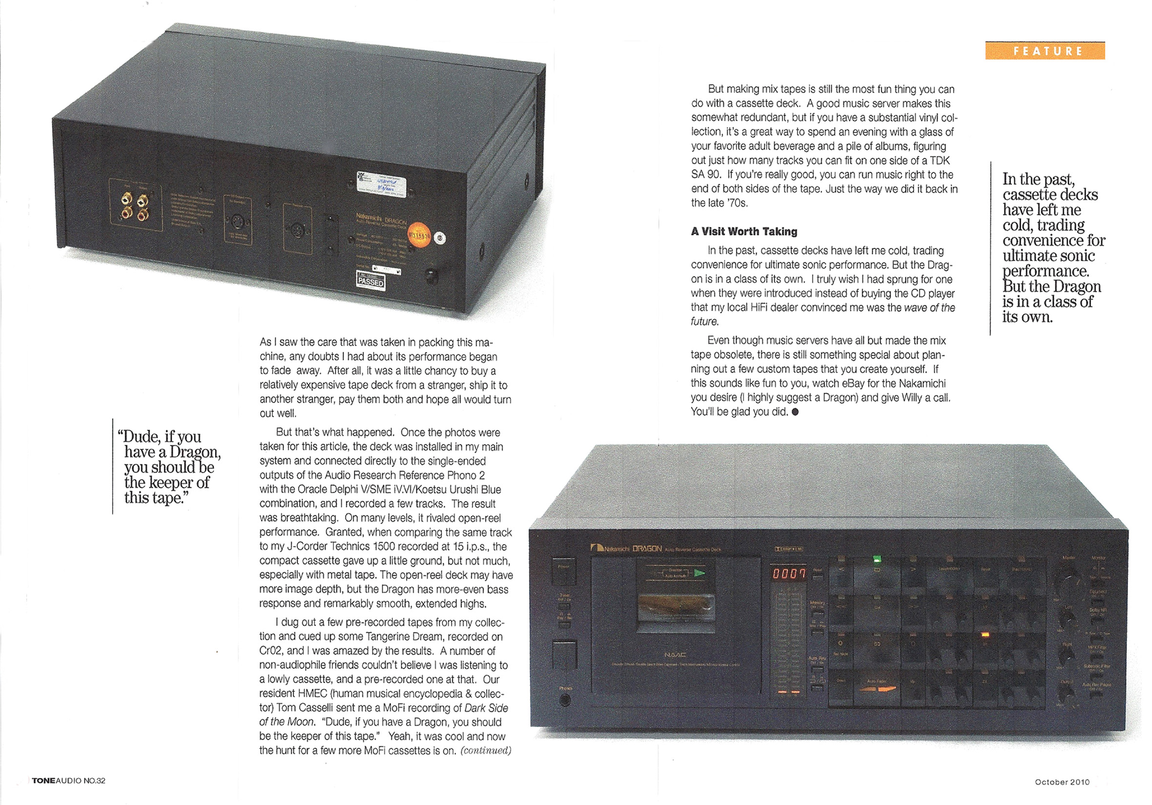 Nakamichi Dragon Cassette Deck Article, 2 of 2 pages - from ToneAudio, October 2010.