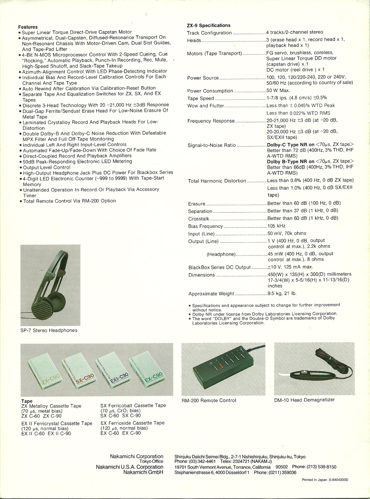 Nakamichi ZX-9 Customer Brochure - Eight pages of excellent information!