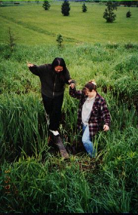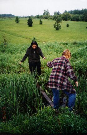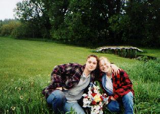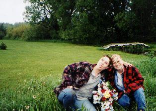 It was hard, but I had to do it. I needed a sense of closure to what happened. I wasn't in Ashland when it happened, I had gotten the news secondhand, the online paper didn't tell much, and I couldn't go to the funeral. It was difficult to comprehend that Bryan was gone. So the day before 2001 graduation, shan and I set forth to find the accident site. At first we couldn't find it, then a nice elderly couple passed us and showed us the area. By this time, the same painful cold surrounded my body and I was barely breathing. Shan asked the owner of the land if we could place the memorial we had brought, and she agreed. As we looked for a place to put the flowers, Shan pointed to a mound. Upon arriving at the spot, I broke into tears and nearly passed out when we found there was still broken glass everywhere. The pain intensified to a point where I though I would explode. Thankfully Shan was there to comfort me.