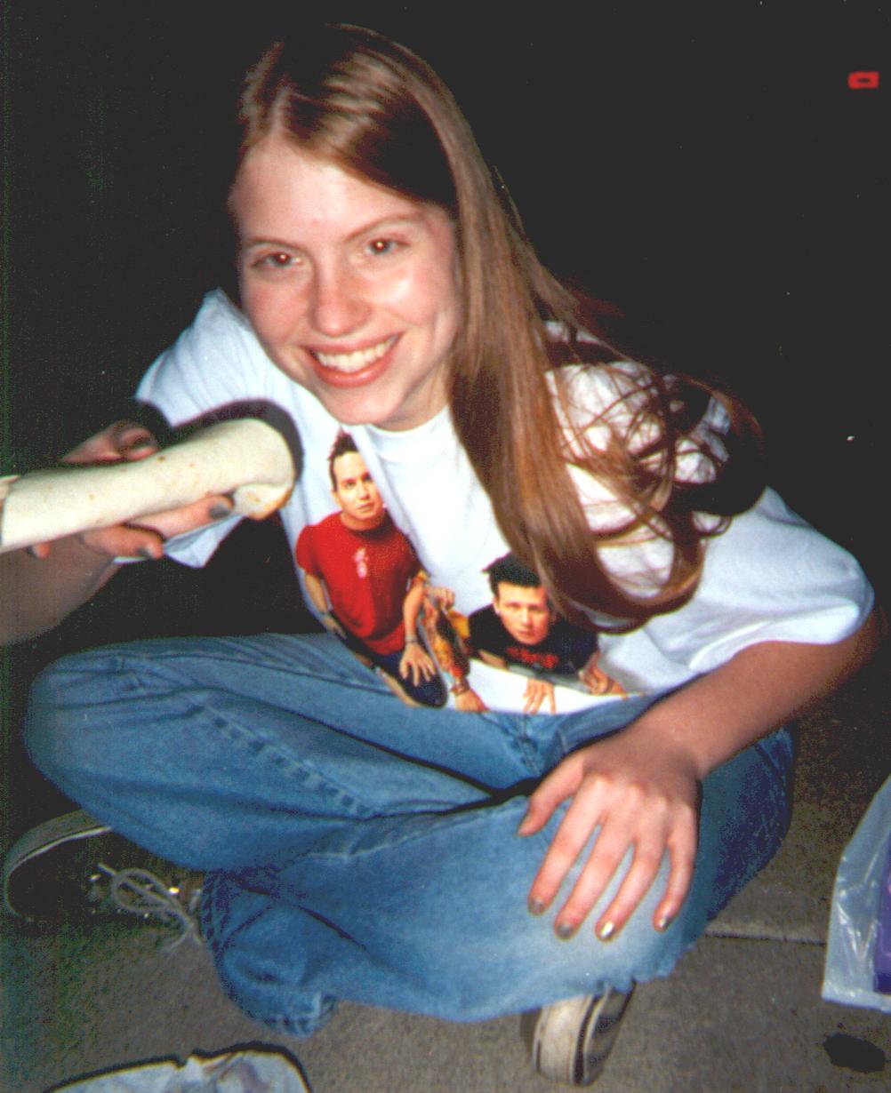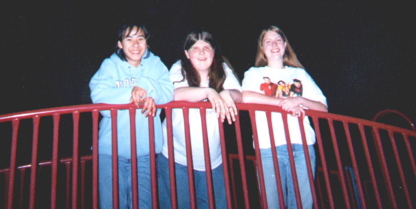 Amanda, Erica, and Lisa on a bridge at a park at uh... about midnight. Heh.