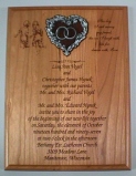 on a 9X7 Solid Cherry-Wood Plaque with an Inlaid Pewter Heart & Rings or
