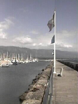 The very popular "Flag Walk" along the breakwater wall with its flags is a beautiful sight.