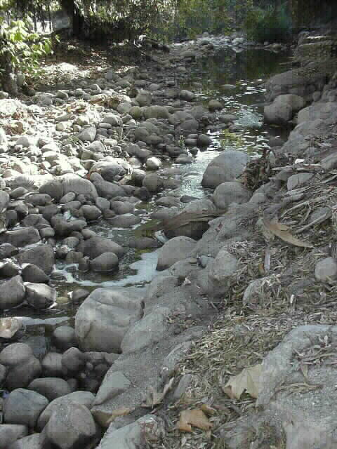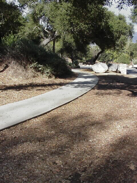 In the left picture is Mission Creek and on the right is a walkway through our grove.