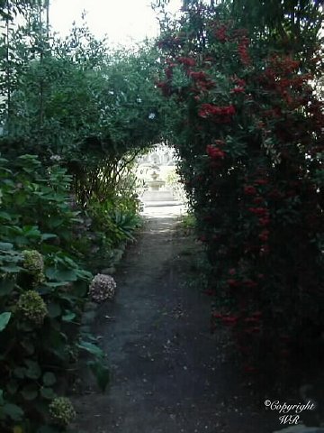 from the fountain in the A.C. Postel Memorial Rose Garden across the street,