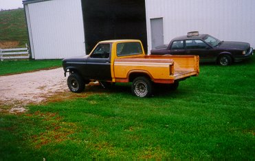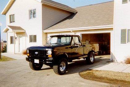 Feburary 23, 1996. This is what it started out as, a 1980 Ford F-150 4x4. My first vehicle. It came with a 351M V-8, T-18 4-spd transmission, 31" tires, and not that much rust.
