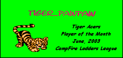 Ladders activity keeps growing in the CampFire League of the Zone. Tiger Pack achieved the Number One ranking on the ladder three times during the month (June 15, 22, and 30). The top spot was also earned by the Tiger Pride team on June 7th. All four of the Tiger teams were constantly in the Top 20 of league play. Indeed a fine job by members and captains. The Tiger Pride displayed in Ladder Room 5 is evident and most appreciated by all of us.