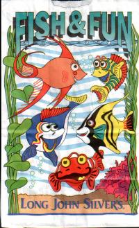The darling pictures on this gameboard came from a different source. I was visiting friends in Indiana and they took me to Long John Silvers to eat since I had never been there before. When their daughter ordered a children's meal and got the most darling bag. I immediately knew I had to have one too. But my friend did me one better. She called the manager over and told her about the games I make and said I could certainly make good use of lots of these bags. The kind manager gave me a stack of them. They have made several different games and been shared with several friends.