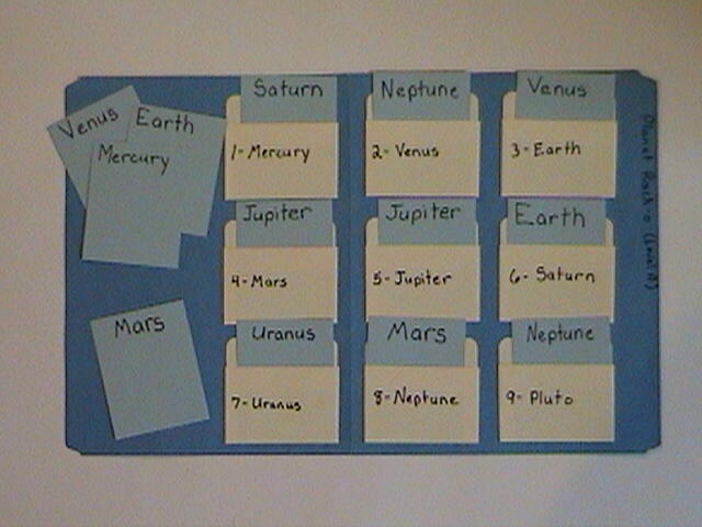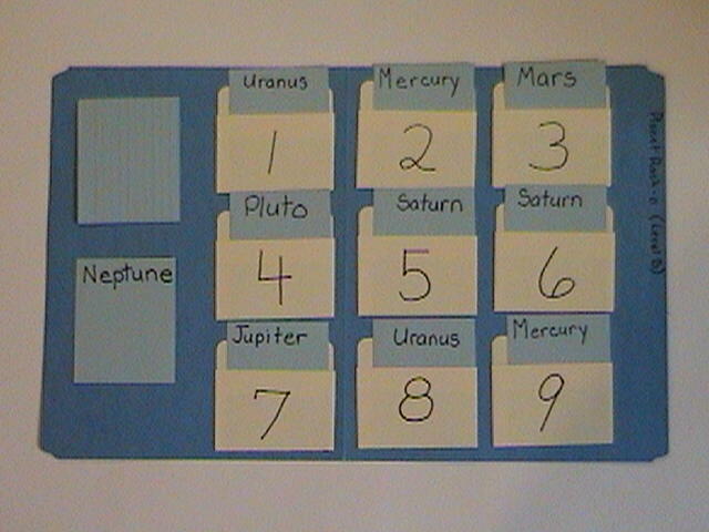 Once the child has learned the order of the planets, change the playing filefolders to have numbers rather than the name of the planets on the pocket.