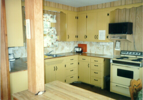 There is one bathroom upstairs with a shower stall and a bathroom downstairs with a small tub. There is a kitchen with refrigerator and stove and a microwave. The kitchen is supplied with all cooking utensils, dinnerware, silverware, etc. There is also another refrigerator in the "mud room"/porch.
