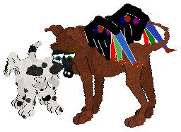 Hola! I'm Paws (on the left). **And I'm Pilot!!** We're both looking at Wriggley because we don't know what in the world he's doing!!! **Hehe he's silly** I think you like him!!! **No I don't!!! Well..okay..maybe I do...** I told you so I told you so!!! **You're annoying** That was mean!!!! Anywayz...Angel the Cupid is my mommy and Bread the Dalmation is my dad. My mom is also Wriggley's gramma! Sarah says I'm her favorite dog of them all!!! **Pout** Oh stop whining... **Puppiez are soo annoying!!! I'm a Flighty Dane, and I've had a few pupz myself, so I should know! They're such a hassle.** You love me though, Pilot, admit it! **Yes, I do, you're fun...but annoying!!!** Stop jammering and get on with it! **Oh yeah, this is the Fun in the Sun Club. Send in any photos of your Pet with his/her beach attire on, even if it is just sunglasses!! See how much fun Wrigz is having?!**