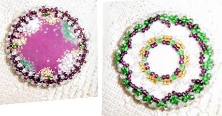 Front and back shown. This is the first CAB I beaded. I used the netting tutorial from Susan aka Beadnik's website. The back of the CAB is slightly ruffled, and reminds me of the crocheted doilies my grandmother used to make!