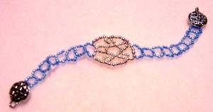 This fun little bracelet is from the tutorial on Anne Checker's website. I used 4mm round Sterling Silver beads, and size 11 Japanese color-lined beads. The Sterling Silver clasp has a Celtic design. Woven in the Right Angle Weave stitch (RAW).