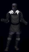 on the surface and throughout the Underdark has bred a fierce race of elves. The warriors are among the finest bladesmasters in all the realms. Drow warriors favor fast and light weapons, that can be coated with poison. Crossbows and bows are also trained in. Maces are seen as sluggish and useless in battle. No self respecting warrior would train in them. The complex tactics in battle are carefully studied and practiced among the Melee-Magthere, and all warriors must learn how to effectively lead in combat. Without the Sargtlin of the House to fight the Matron's battles, there would be no foundation for power. The warriors form the main body of the Drow army. The Drow are true friends to none, and the list of enemies of a house grows quickly. There are times when a unseen dagger or a particular incantion is preferred, but when subtlety is no longer an issue, the troops are sent forth to make an empathic statement. Uniforms: Members of the Melee-Magthere are required to wear uniforms on raids against enemy guilds. The shown suit of armor is prefered, however, a full suit of chainmail with ringmail arms and gloves is acceptable. Footwear and helmets are optional. |