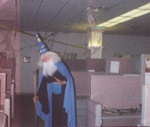 Recently at work, Paul, one of my supervisors, asked if I could help out with a promotion. We threw around the idea of using Colors the Clown, but finally decided upon Merlin the Magician. The theme was "Bring the Magic Back".