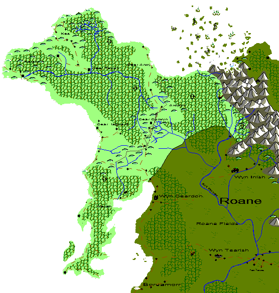 Kellsor is a large and diverse region of the continent. Much of the area is covered with rugged low mountains, green valleys, and frequent deep lakes, providing beautiful scenery. Kellsor has more coastland than any other region/kingdom of the continent, but due primarily to lack of organization, it is not a major sea faring nation.