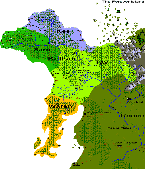 The people of Kellsor (called Kels) were believed to once populate the whole western side of the continent. As the Arian and Cormyr people migrated into the southern part of the west coast (some 5 to 6 thousand years ago) the Kels moved north. Much of Kellsor’s history has been marked by warfare. Clan wars have been common throughout Kellsor’s history, including into very recent history. Many clan raids have gone outside the boarders of Kellsor into Armania and Roane.
