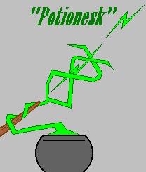 "Potionesk" - The Potion Spell - this is a unique spell that releases the effect of a potion; must be dipped in potion beforehand (varies)