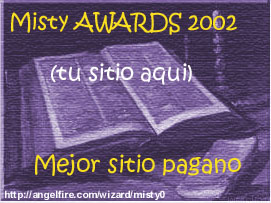 Index | BOS | Religiones | Fiestas paganas | Meditación | Sueños | Diccionario | Links | Wiccaweb | Sonidos | El atico | Misty Awards | Dark girls group