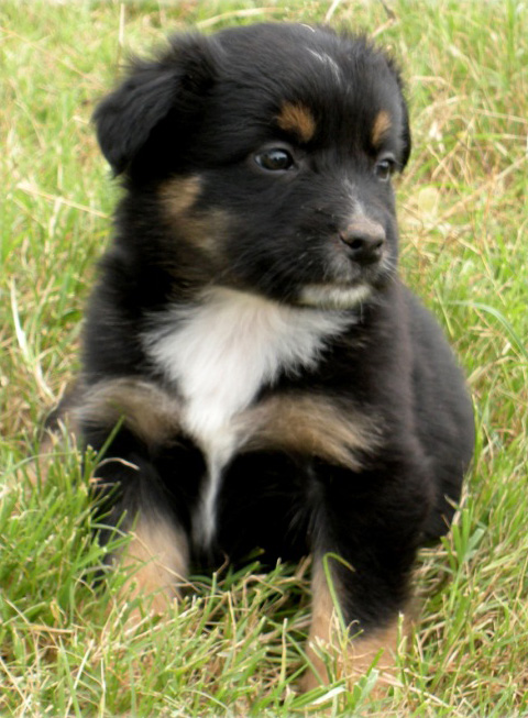 This litter also has one beautiful, black tri female that reminds me of a little princess. Unfortunately, the battery in my camera died before she was able to get her photo taken. She is one of the calmer puppies of the litter and strikes me as a really good candidate for a young girl's companion.