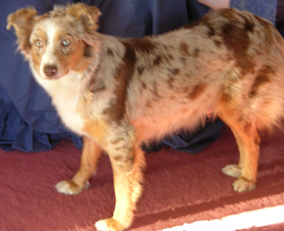 Callie had one blue merle female and one red merle male this litter. Both of the merles have been placed. They are both really nice puppies. The blue merle female has a steady, intermediate personality. She strikes me as a dog that won't take any nonsense when she grows up and and may lean towards an alpha personality. This girl has been placed with a nice lady and her three year old daughter. The red merle male is a sweetheart of a boy that reminds me very much of his mother. He is very playful and has a blast with my younger sister. He will likely be a great kids dog. The red merle male has been reserved by a couple in northern Arkansas.