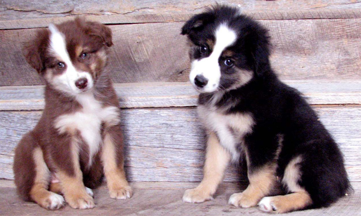 All of our girls have found their permanent places in the world. The black tri female is very attentive without being overbearing. She is sharp as a tack and really sweet. She is the only pup from this litter who found a way to escape from her playpen, but instead of running off to find trouble she immediately pranced up to the backdoor to be praised for her new skill. This girl just wants to make you happy. She and her brother are now living with a family in the Ozarks who loved their previous Aussie so much they decided to get two more. The red tri female shown with her sister in the second picture is still as loving and sweet as she was at six weeks. She is the most like Callie in personality of any puppy in this litter. She has a happy, boingy-playful personality while you are dancing in the grass with her. On the other hand, she adores a simple snuggle during quiet time. She is my younger sister's first pick for a cuddling companion while watching cartoons on a lazy weekend. This red tri lady is going to live with a park ranger in training. We hope to vicariously share some of their many adventures in the great American outdoors in the future!
