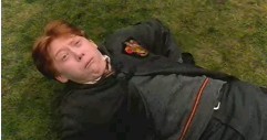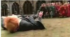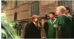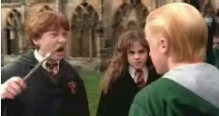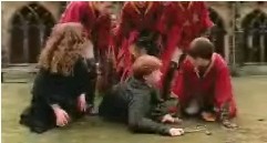 Here are some screen shoots I've made of the scene when Ron's hex on Malfoy backfires and he's the one who 'eats slugs'. Please do not take any of my screen shoots, since it takes lots of work and time to get just the right photographs.