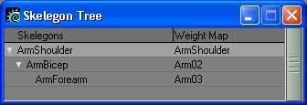 ![]() This tutorial covers skelegons. Skelegons allow you to create a bone hierarchy in Modeler. Let me say right at the onset that this tutorial is going to introduce you to skelegons, showing how you create them, place them, name them, and give a weight to the polygons around that skelegon. IMPORTANT - When you know that you'll be creating skelegons for your model, ALWAYS create the model with its arms out to the sides. It will make things easier if the arms are perfectly perpendicular to the body. Also, make sure that the legs are spread away from each other at about a 40 degree angle. I'll be showing why this is true in upcoming tutorials. MODELER, WHAT ARE SKELEGONS? Skelegons are a polygon type which can be added to your object in Modeler and LOOK like bones. You can create a complete skeleton out of these new type of polygons. However, skelegons AREN'T bones. They only act as a placeholder for bones once you bring the object into the Layout program and do a 'Convert Skelegons to Bones' on them. Once you've converted skelegons to bones in Layout, you can't reverse the process, modifying the bones in Layout and converting them back into Skelegons. In Layout, bones allow you to animate anything from a toaster, to an arm, to a body. You set up a relationship of motion just as the bones in your arm do. You move bones in Layout to deform the object just as moving bones in your body deforms your arms and legs from their present positions. There are a lot of clear advantages to using Skelegons instead of building bones one-by-one in Layout. If your boss suddenly tells you that he wants the legs to be longer, and the arms to be shorter, you can do that easily with Skelegons. LightWave has really scattered the information about how to use skelegons all over the book though, and they don't give you the clues that let you properly use them. This tutorial will hopefully be that key for you. I will make the pertinent text which will turn that key VERY LARGE so you won't miss it. There are a LOT of people out there struggling with skelegons because of this. MODELER, CREATING SKELEGONS Press the space bar to complete any operation you were currently doing, and make sure you have saved whatever you were working on before. Do a 'Close All Objects' from Modeler's 'File' menu. From the 'Create' tab, 'Elements' section, select 'Skelegons'. In the 'Back' viewport click anywhere, clicking somewhere else. The first time you click a circle with a crosshairs in the middle of it will appear. The second time, a strange double-sided pyramid with it's smallest pyramid towards the first point you placed will appear. This is called a skelegon. ![]() ![]() ![]() And, before, bones had to be saved in the program where you set up the world rather than kept inside the place where the object was. Since bones are part of a body, why shouldn't they be part of the object just as they are in the body? Now, click one more time to the left of the last circle. ![]() ![]() MODELER, THE FIRST CIRCLE IN A SKELEGON CHAIN IS DIFFERENT The first circle in a skelegon chain does a different thing. When you try and move the first circle, a new skelegon will appear. It will lengthen as you pull and the rest of the skelegons will move, not changing position relative to each other. ![]() Press the spacebar to finish the skelegons and exit from the Skelegon tool. MODELER, PRESS SPACEBAR TO COMPLETE SKELGONS ![]() Enter Polygon mode by pressing CTRL-SHIFT-H and make sure that no polygons are selected. Click the left mouse button and drag your mouse across the skelegons so that one of them becomes highlit. ![]() ![]() MODELER, DELETING SKELEGONS It's simple to remove skelegons, just press the 'Delete' key while the skelegons are highlit and they all disappear. ADVANTAGE OF SKELEGON CREATION OVER BONES One great advantage of creating skelegons in Modeler rather than assembling Bones in Layout is you can assemble an entire skeleton, naming each bone, and because skelegons are just like polygons you can select the entire skelegon structure and paste it into its own object to use again later, with modifications, in another similar model. LAYOUT, CREATE ARM'S SHOULDER SKELEGON To illustrate, I will be using the arm that you made in the last tutorial, so from the 'File' menu, do a 'Load Object' and load 'arm.lwo' into Modeler. Arrange the 'Back' and 'Right' views like this... ![]() from the 'Create' tab's 'Elements' section.Click the left mouse button to the right of the shoulder in the 'Back' view and a crosshairs with two circles around it will appear. Hold the mouse button down, dragging it to the left. Let go of the mouse at approximately the center of the deltoid muscle. The first skelegon appears. ![]() MODELER, AUTOMATICALLY ASSOCIATING/CREATING WEIGHT MAPS FOR EACH SKELEGON Press the 'n' key to bring up the 'Numeric: Draw Skelegons' requester. From the 'Actions' drop-down pick 'Activate'. Under the 'Name' box, type 'Arm'. Keep 'Digits' checkmarked. Click the 'Fill Weight Map' checkmark and change the 'Weight Map' name to 'Arm' also. Keep the Falloff at 'Inverse Distance^8'. Click the close gadget. ![]() Each time that you click the left mouse button while in 'Create Skelegon' mode, it will now create an associated Weight Map. Click the close gadget of the requester and you'll see the name 'Arm01' appear in the drop-down menu at the bottom right of your window. ![]() MODELER, CREATING BICEP SKELEGON Click the left hand mouse button at approximately where you think the elbow would be. A second skelegon will appear. ![]() ![]() Nothing seems to have happened when you look at the 'Weight Map Drop-Down Menu', but if you left-click on where it says 'Arm01', you'll see that it also created an Arm02 and Arm03 Weight definition. ![]() LAYOUT, 'SKELEGON TREE' PANEL Select the button from the 'Elements' section of the 'Detail' tab. This panel shows you both the skelegon names, and the associated Weight Map names.![]() In the same manner, since Arm