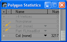 If no other polygons were currently selected, the part or surface you selected will become selected. Otherwise, it will be added to the current selection. So, surfaces are created by clicking 'q' to bring up the 'Change Surface' requester and parts are created when you create a skelegon or do a 'Surfaces to Parts'. |
