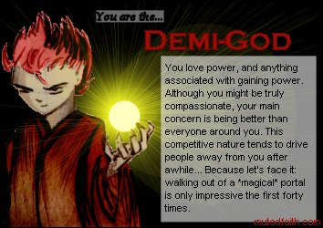 demigod...^^;;; i like power! woah...didn't see that one coming...^^;;; |