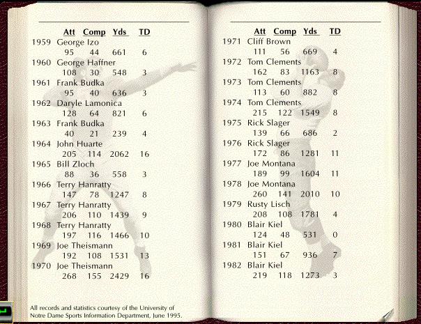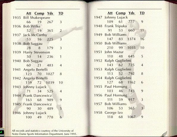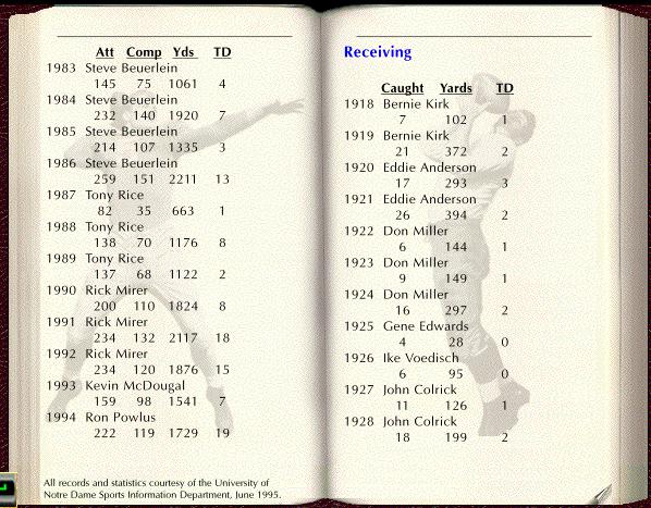 ~ ~ THE FIGHTING IRISH PLAYER'S NAMES & RECORDS ~ ~