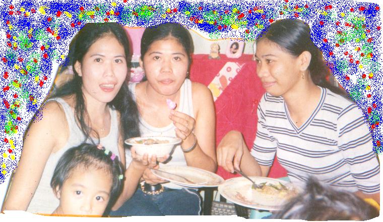 Hello! I would like to introduce to you my sister Ate Aurora at the right side and my cousin Airene at the left side. This child in the pic is my niece. This picture was taken during my sister's birthday!!!!
