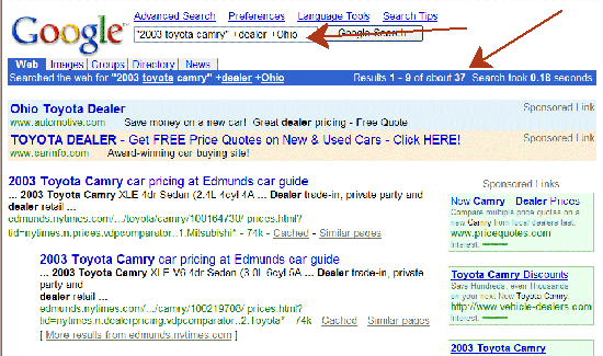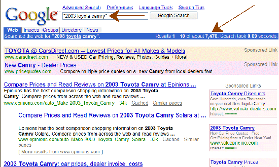 following these rules). Let's type in this: "2003 toyota camry"