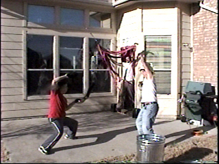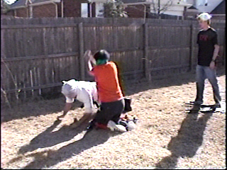 Now it's time for our main event of the day. This fued between Swink the Shocker and Scott Structure has stemmed all the way back from 1999. Now they will meet one on one for the richest prize in the backyard game, the FPW Championship. The fan favorite challenger entered first confident and ready to wrestle. The reigning Champ entered only to be mocked by his opponent. The action went back and forth at first but Structure began to take control using the ladder. Swink reversed using some of the broken pieces of table and climbed the fence for a high flying move. Before he could get into position, Structure ran into the fence knocking Swink off landing on pure concrete. Structure brought Swink back into the backyard throwing him into the house multiple times. Structure made a non-sealant cover but Swink quickly kicked out. He then threw Swink into the chairs in the fan section and the fans went-a-runnin'. Structure attempted many different pins but he couldn't keep Swink the Shocker down. Swink blocked a punch and knocked down Structure with one of his own. He then catapulted off the fence and splashed onto Structure only to get a two count. Structure countered some chair attacks with a low blow and then proceeded to throw Shocker into the dog igloo. They made their way to the front yard and Shocker took control. Shocker hit powerful uppercut sending Structure rolling down a small slope. Shocker tried to throw Structure into a truck but Structure reversed and threw Shocker into the truck. Structure then climbed into the bed of the truck and leapfrogged on top of Shocker only to get a two count. Structure then tried a Ric Flair knee drop but misses and Swink the Shocker tool control hitting some stiff punches and a high impact fisherman's suplex. Shocker then put Structure in a headlock and rubbed his face in a large thorn bush and then rammed his face into the locking mechanism of the front gate multiple times causing Structure to scream out in pain. Shocker hit a karate style hip toss but Structure made his way back on his feet and raked Shocker's eyes. He then rammed Shocker's head into a glass table almost shattering it. Structure then threw Shocker onto the Trailer's Trash's trash can and then put his head inside it. Structure then proceeded to beat the trash can with a chair attempting to give Shocker a concussion. He continued to work the cranium of Shocker with a big head butt and a shot directly to the temple of Shocker with another piece of the broken table. After multiple knee shots to the head of Shocker and a two count, Structure got desperate and attempted to hit Shocker with his Title belt but missed and hit Zamora instead. A tired Swink the Shocker went for a clothesline but Structure ducked and then hit his finisher, The Break Down. Referee Zamora was out so a pin could not be made. Structure yelled for a ref and referee Blake Watson ran out to make the count, but Swink kicked out at two and Structure was furious. Structure accused Watson of making a slow count, then knocked Watson out and threw him out of the arena. When Structure turned around, Shocker gave him a quick kick to the stomach and set Structure up in front of the table. As Zamora was coming to, Swink picked Structure up and gave him an Outsider's Edge though the table. Structure was done for. Shocker covered his opponent and Zamora made the three count and the title match was over! Swink the Shocker has defeated long reigning champion, Scott Structure to become the new FPW Champion. Shocker celebrated his victory and mocked Structure as he tried to get up but couldn't. It looks like the UHI's reign of dominance has ended here at FPW Arena #2 on this hot february day!